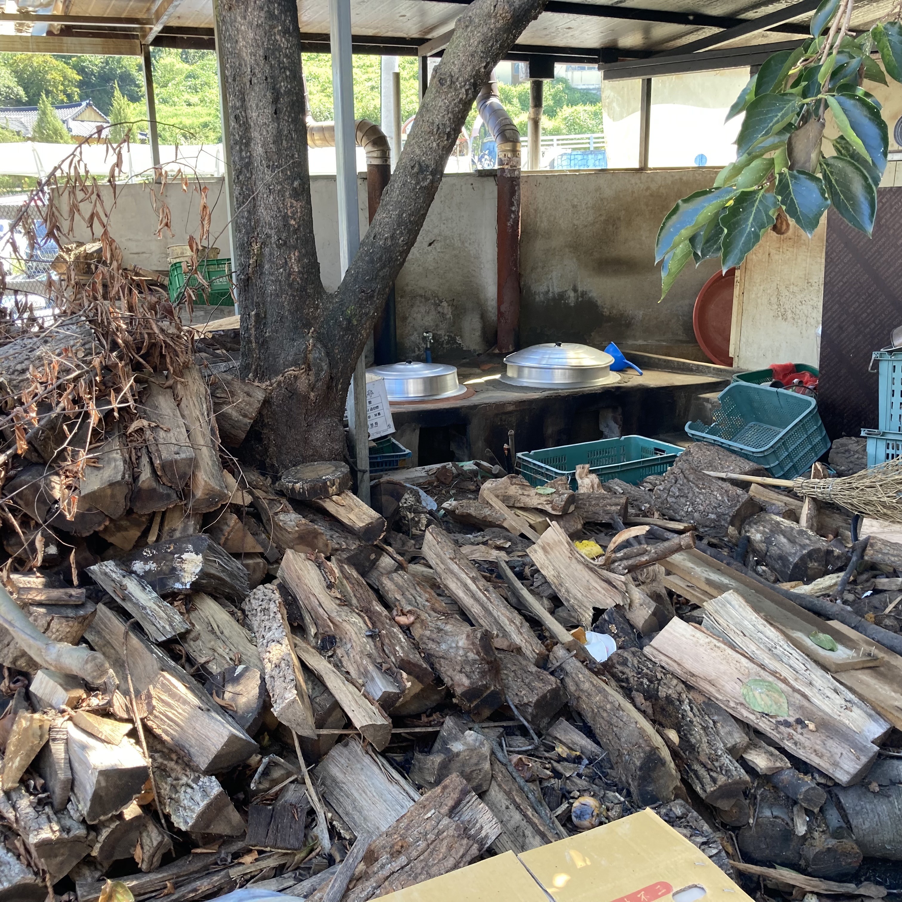 가게 앞에 쌓여있는 장작과 펄펄 끓는 큰 가마솥을 보니, 이곳의 순대국밥이 얼마나 깊은 맛을 낼지 짐작할 수 있었습니다. 오랜 시간 정성 들여 끓여낸다는 느낌이 물씬 풍겼어요.