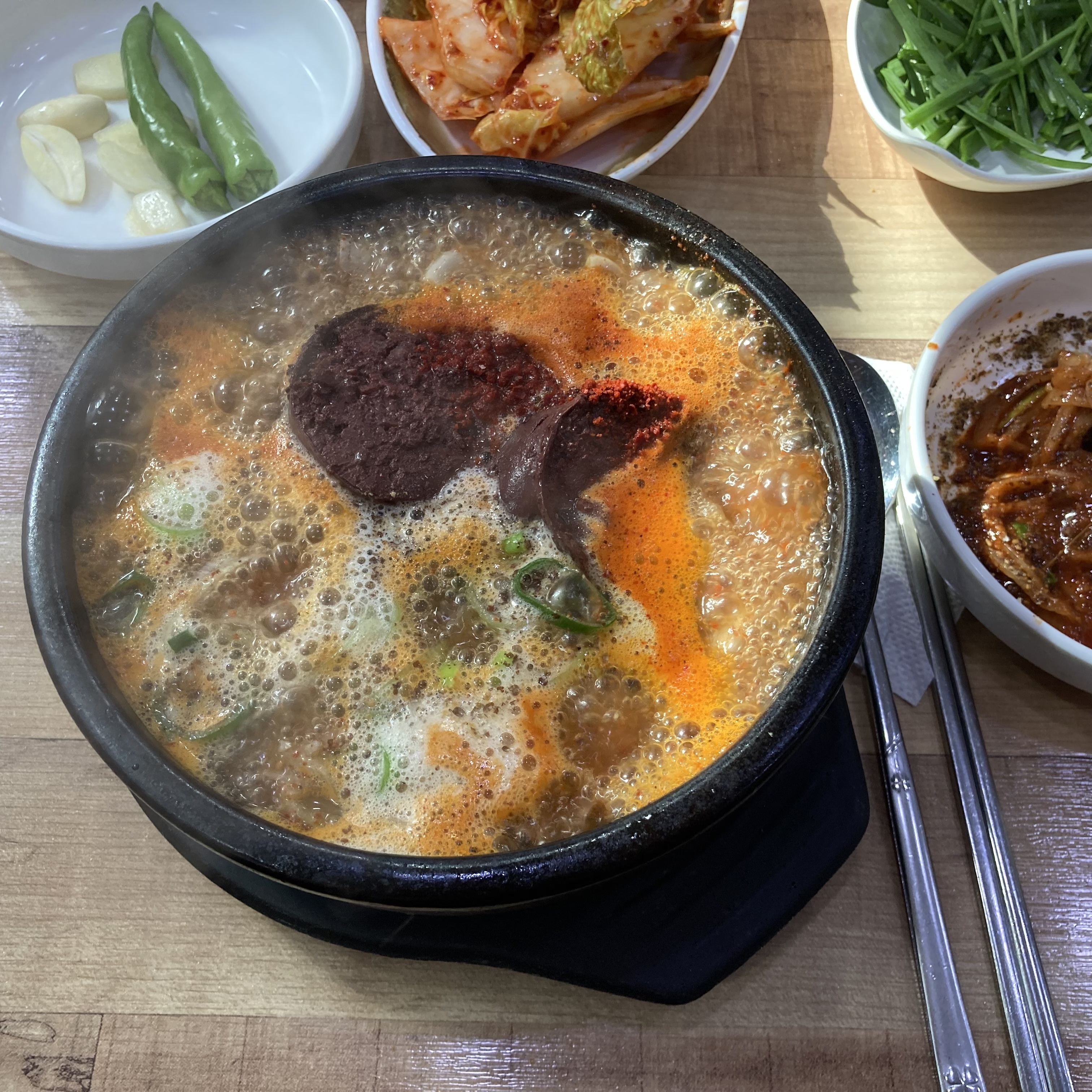 그러다 몇 년 전부터 순대가 대창 피순대가 아닌 그냥 피순대로 변하고, 국밥에는 당면 순대가 추가되는 것을 느꼈습니다. 그날 친구들과 많이 실망했던 기억이 있습니다. 가게 이름이 '피순대'인데 당면 순대가 나오는 건 반칙 아니냐며 투덜대기도 했지만, 다음 주에 또 방문했습니다. 국물 맛은 여전히 최고였기 때문입니다.