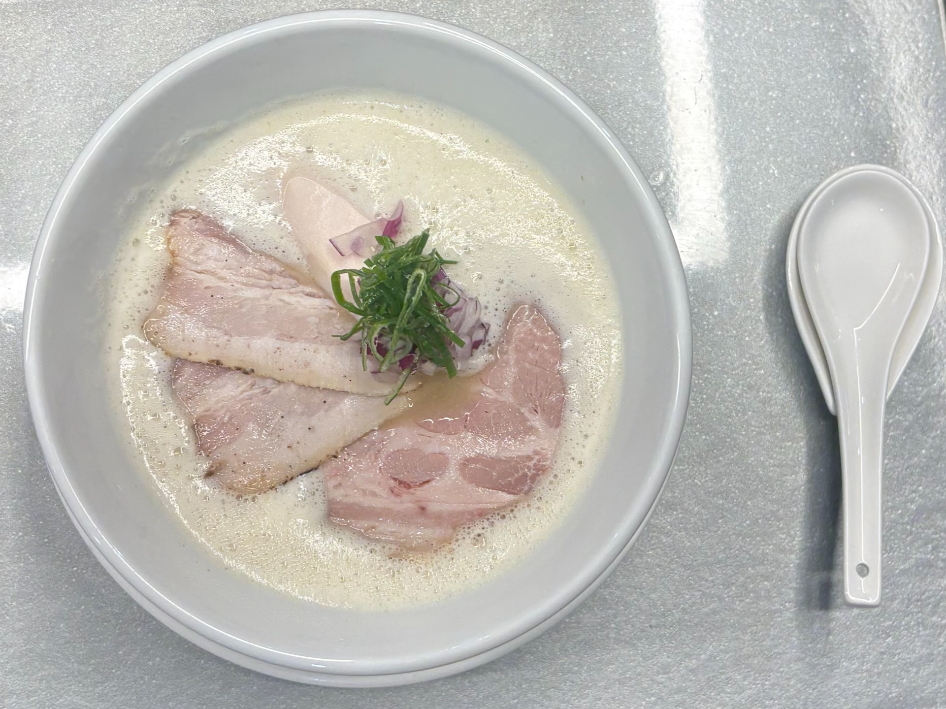 토리파이탄은 닭 뼈를 고온에서 장시간 우려낸 백탕 육수가 핵심입니다. 한 입 뺏어 먹어본 국물은 입안을 부드럽게 감싸는 크리미한 질감이 일품이더군요. 수비드 요리에서 온도를 정밀하게 조절해 이끌어내는 부드러움과는 또 다른, '시간'이 만들어낸 진득한 감칠맛이었습니다. 추운 날씨 덕분인지 그 따뜻하고 진한 농도가 평소보다 훨씬 매력적으로 다가왔습니다.